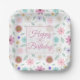 Pretty Pink Flowers Groovy Retro Design Paper Plate