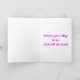 This card is great fun and good quality. I loved the humour inside and on the back. There is the opportunity to change the orientation of this card from landscape to portrait, which I did. It is relatively straightforward to amend the typeface to fit the new orientation. It was well packaged with no plastic. The printing on this card is excellent.