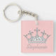 Pretty key chain done in a light pink background. Graphics of a pretty light grey and white crown decorates the middle, with grey script text, on the bottom. Personalise the text for yourself or as a great little gift idea.