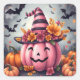 Pretty Pink Halloween Pumpkin Jack-o-lantern Square Sticker