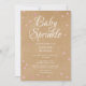 Pretty pink love hearts are scattered around your personalised details set in white text on a rustic kraft boho paper background with extra pink hearts scattered on the reverse of this chic baby sprinkle, shower or couples shower invitation. Designed by Thisisnotme©