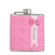 Pretty Pink Medallion Damask Cute Bow With Name Hip Flask
