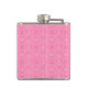A chic and feminine vintage medallion pink damask pattern flask with a stylish and girly ribbon banner and a cute decorative double bow. Personalise this pretty pink old fashion style fashion accessory by adding your name to the custom text area. Flat printed image, not actual ribbon. Design copyright of @OhSoGirly