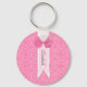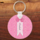 A feminine vintage pink medallion damask pattern keychain with a girly pink ribbon tied into a cute bow. Personalise this pretty old fashioned design by adding your name. Flat printed image, not actual bow.