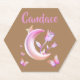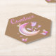 Make a statement with this distinctive hexagon-shaped paper coaster. Showcasing a whimsical design of a pretty pink moon, butterfly, and floral motifs on a light brown background, it adds a touch of charm to your table setting. Personalise with a monogram name for a unique detail or a thoughtful gift. Perfect for both casual and elegant occasions, this coaster combines functional protection with a delightful aesthetic.