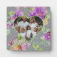 Elegant pink purple watercolor floral photo heart template plaque. Customise with your own photo!
