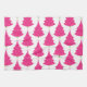 Pretty Pink Retro Christmas Tree Pattern Tea Towel