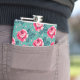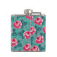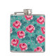Pretty Pink Roses and Polka Dot Pattern on Teal Hip Flask