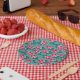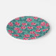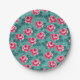Pretty Pink Roses and Polka Dot Pattern on Teal Paper Plate