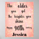 Pretty Pink Sparkle personalised 90th Birthday Add name Poster.
