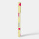 This fun design is made of big hot pink square shapes and little light pink square shapes that resemble confetti falling with a creamy banana taffy yellow background and a sample name in a super cute pink font. This is perfect for a girl's first phone!