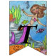 This flag shaped bunting banner has a pretty mermaid with a pink tail wearing pearls swimming in the ocean with a seahorse and starfish above seaweed and colourful rocks. Customise the Happy 40th Birthday text with the templates.
