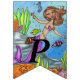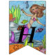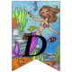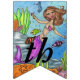 Pretty Pink Tailed Birthday Mermaid in Ocean Bunting