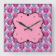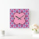 Pretty Pink Triceratops Dinosaur Pattern Square Wall Clock