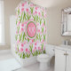 Pretty Pink Tulip Floral Flowers Leaves Monogram Shower Curtain