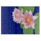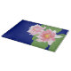 A chic Glass Cutting Board, with two pink Water Lilies on a deep blue background. The water lily is the July Birth Month flower and there is space to add your initials or name if you wish.