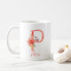 Pretty pink watercolor letter "P", embellished with a delicate watercolor floral bouquet, personalised with name, coffee mug.