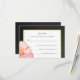 These stylish RSVP cards feature a black chalkboard look background and faux gold frame, along with a lovely pink flower. We have used some art from LABFcreations.