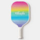 Pretty Pink Watercolor Rainbow Trendy Script Name Pickleball Paddle