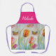 Pretty Floral Pastel Tulip Pink and Bee Watercolor Painting Pattern Woman's Kitchen Apron, with a fully customizable name. Designed from my original cat illustration.