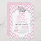 Pretty Pink, White Grey Elephant Baby Shower 2 Invitation