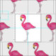 Fabric features an original illustration of a pink flamingo, printed on a white background.