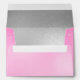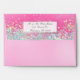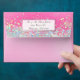 Pretty special occasion envelope done in graphics of a pink ombre, with glitter like confetti on the back flap. Graphics of silver foil decorates the inside of the envelope. Personalise the custom return address, on the back flap, to suit your needs.