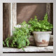 Pretty plants sitting on a rustic wood window ledge ai art.