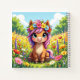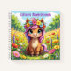 A cute personalised sketchbook you can add your child' name to. Keep all their sketches in this sweet sentimental notebook. An adorable pony with a ring of purple and pink flowers on her head. A sweet whimsical ai illustration that is bright an colourful in pink, blue, yellow and purple.