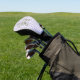 Cute lady's golf club cover done in a lavender and white gingham pattern. Fun graphics of a fuzzy white poodle, decorates the middle of the cover. Personalise the black number to read what you want. Great gift idea. Chose either driver cover or putter cover.