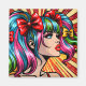 Colourful cute pop art comic style girl with pigtails and bows in her hair.