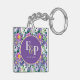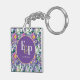 Pretty Purple Blue Florals Monogram Wedding Favour Key Ring
