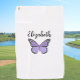 Pretty purple butterfly with custom name ladies golf towel