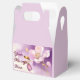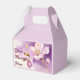 Introducing our enchanting Customisable Party Favour Box, the perfect addition to elevate any celebration. This exquisite favour box boasts a beautiful floral design, artfully composed with soft purple hues and gold accents that exude elegance and sophistication. The delicate flowers intertwine gracefully, creating a mesmerising backdrop that captivates and charms.