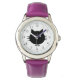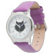 A cute red kitty cat watch bezel with purple bows featuring a cat face I designed with a little heart nose. You will be able to easily personalise this kids cat watch with her name. This would make a purr-fect kids birthday gift, kids Christmas gift and more for the cat lover.