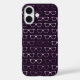 A pretty and preppy iPhone 16 case with a nerdy hipster eyeglasses pattern in shades of plum, lavender, and purple. Ideal for geeks, book lovers, opticians, and more!
