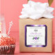 Matching a shimmery purple frame with soft glitter stars and a fine golden decor on a white background.