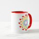 Pretty hearts around hearts in eight colours, like a rainbow on a white coffee mug. A lovely gift for your girlfriend, mother or grandmother.