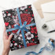 Pretty red, black and white flowers, roses, hearts done in a tribal gothic tattoo style. Cute wrapping paper for any romantic occasion like Valentine's Day, an anniversary or wedding gift.