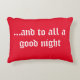 Pretty holly berry red throw pillow with "...and to all a good night" on it in snowy white beautiful script. We have this design in Christmasy green with snow white letters as well. Words can be changed to your own if you prefer. This one is set up in washable cotton but there are other fabric choices with different prices.
