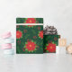 Pretty Red Winter Poinsettia on Green Pattern Wrapping Paper