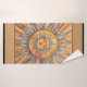 Make an eye-catching statement that reminds us to calm down and breathe. This washcloth, hand and body towel set, with warm tones and relaxing vibe, is sure to Zen up your space. Neutral tones of orange, burnt amber and tan with black accents and feathery sun rays on a peaceful-looking sun's face is a most unique towel set to have in your bathroom!