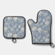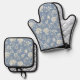 Pretty Romantic Blue Cream Flowers Oven Mitt & Pot Holder Set