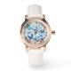 Pretty blue butterfly explosion on light blue and rose gold colored watch background. Cheerful uplifting useful gift. New original design. Thanks for looking.