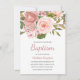 Pretty Rose Gold Pink Flowers Baptism Invite