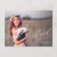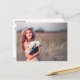 This elegant graduation thank you postcard features a full photo and elegant calligraphy. "Thank you" is written in pretty rose gold script in the lower right corner, with the graduate's name and graduation year below in white. This rose gold and white typography design overlays a full photo of the new graduate (horizontal/landscape orientation). On the back, you can write a custom message to recipients, or delete the template text to create a blank area for a handwritten note.