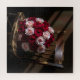 Pretty vintage puzzle with a beautiful bouquet of pink and red roses laying on an old rustic wood chair.