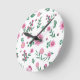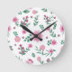 Pretty Shabby Chic Pink Floral Illustration Round Clock