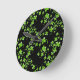 Pretty Shamrock pattern, green on black accessory Round Clock