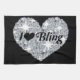 Pretty silver on black kitchen towel featuring my 'I love bling' design. This design show lots of diamonds arranged into a heart shape with i love bling text over the top. Perfect for those how love glitz, glam and sparkle. Please note this product does not have any real gems, glitter or sparkle, the heart is a printed image. Take a look around my zazzle store to find matching items featuring the same design.